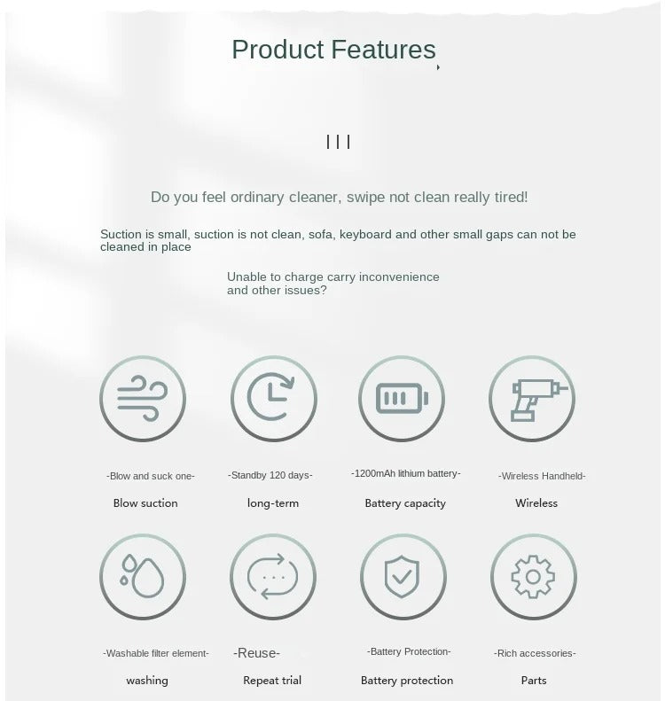 The blowing mode is super handy for dislodging dust where nothing else can reach. The battery life is great, I use it for several days without recharging. Honestly, an excellent purchase!